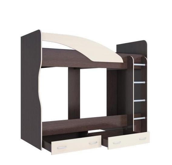 - Кровать оснащена лестницей шириной 332 мм по краям деталей из ЛДСП