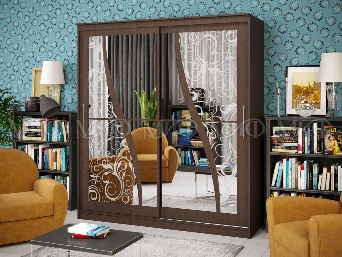 —Шкаф-Купе Элвис-2 с Пескоструйным Рисунком (Ш-1500/1700/2000 × В-2200 х Г-650 мм)/Разные Цвета